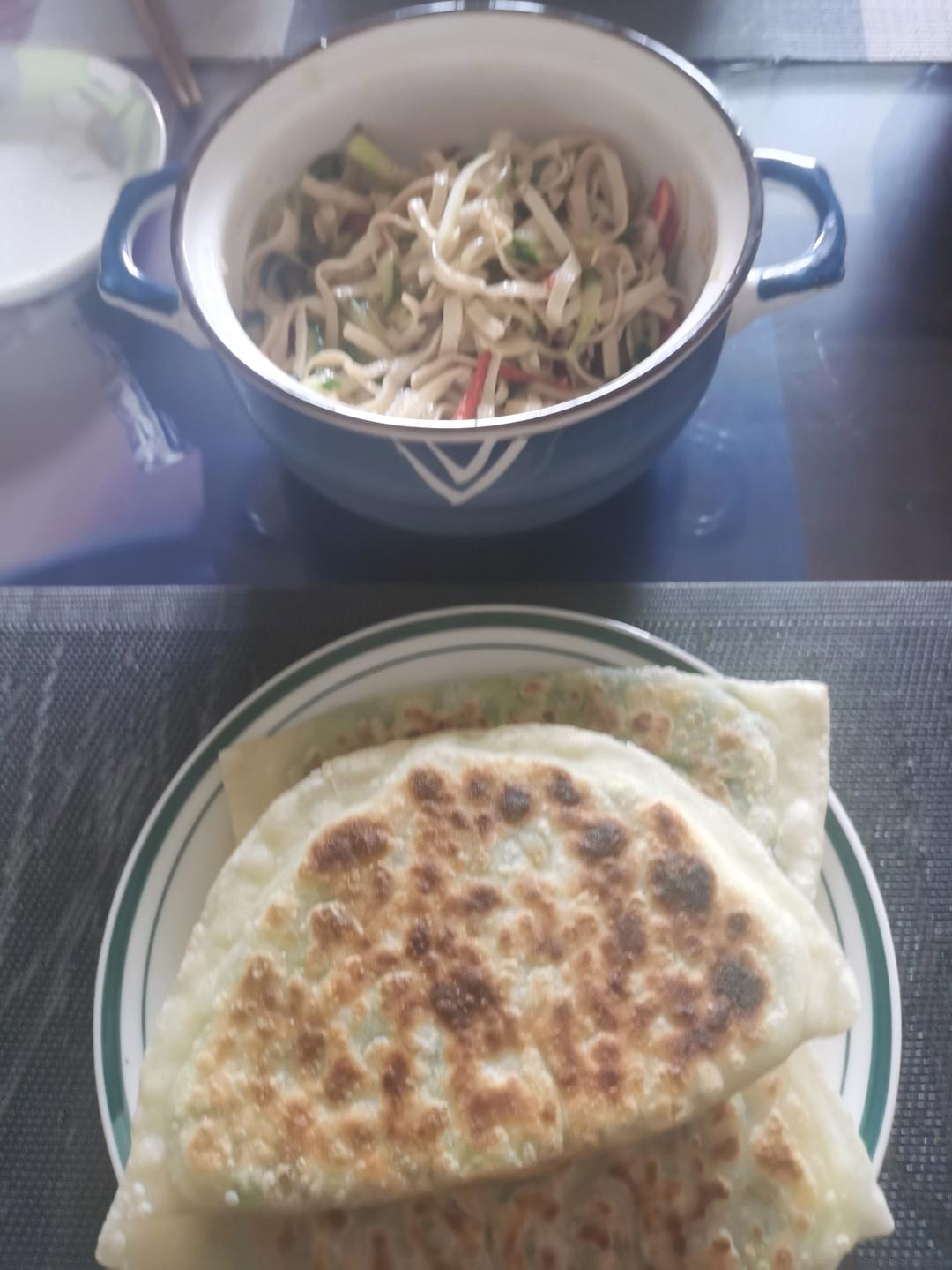 俩宝贝想吃肉夹馍,冰箱里没有现成的肉,就地取材炒了一盘胡萝卜 豆角丝,用500克普通面...