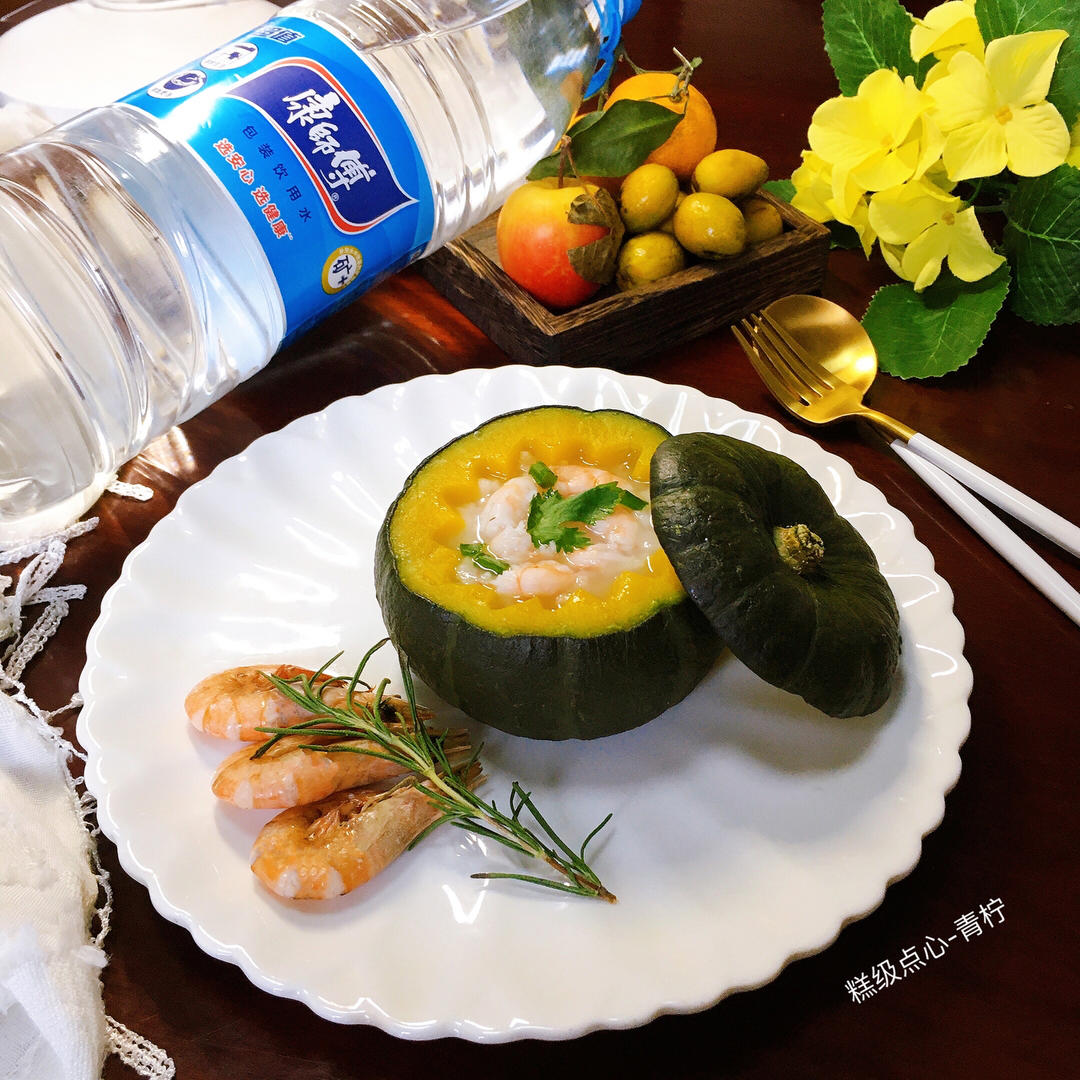 南瓜盅里的虾仁粥是用康师傅饮用纯净水煮的,好水煮好粥😋,纯净清透、口感...