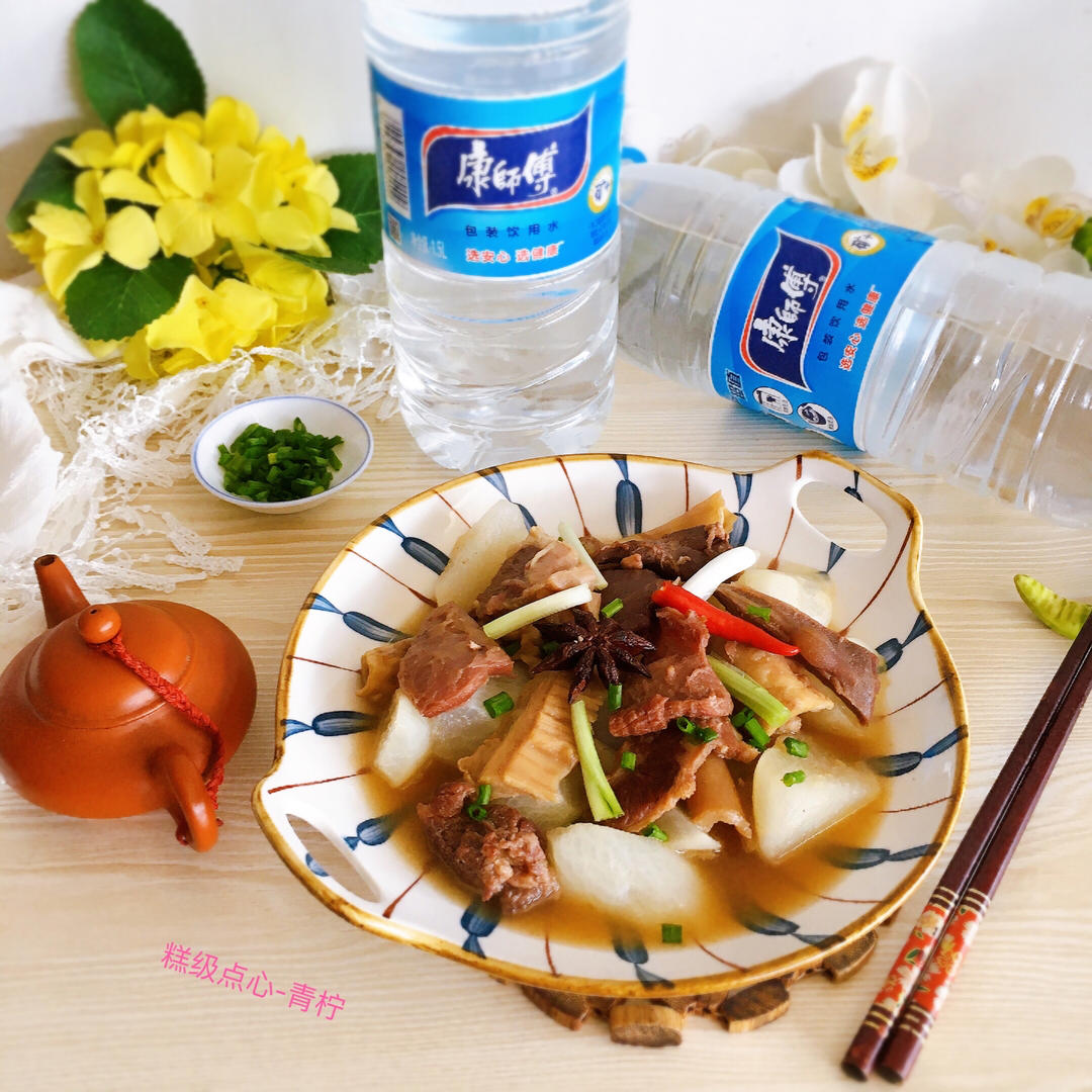 软糯美味的萝卜牛腩煲,用了康师傅饮用纯净水来炖煮,甘香可口味道好,康师...