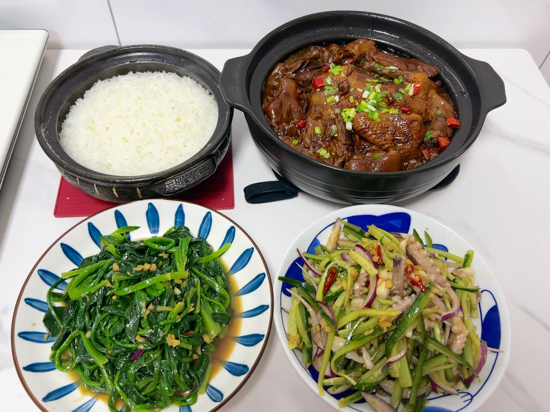 神仙鸡🐔、白灼菠菜🌿、凉拌章鱼🐙&砂锅饭🍚