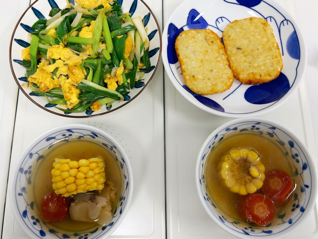 蒜苗炒蛋、烤薯饼&筒骨汤