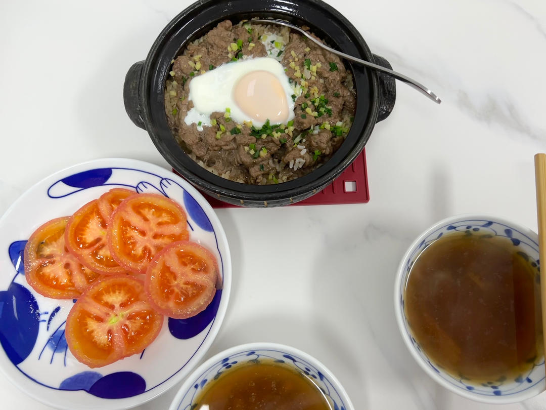 充菜蒸牛肉、蒜蓉生菜苗、南北杏无花果淮山麦米龙骨汤&砂锅饭