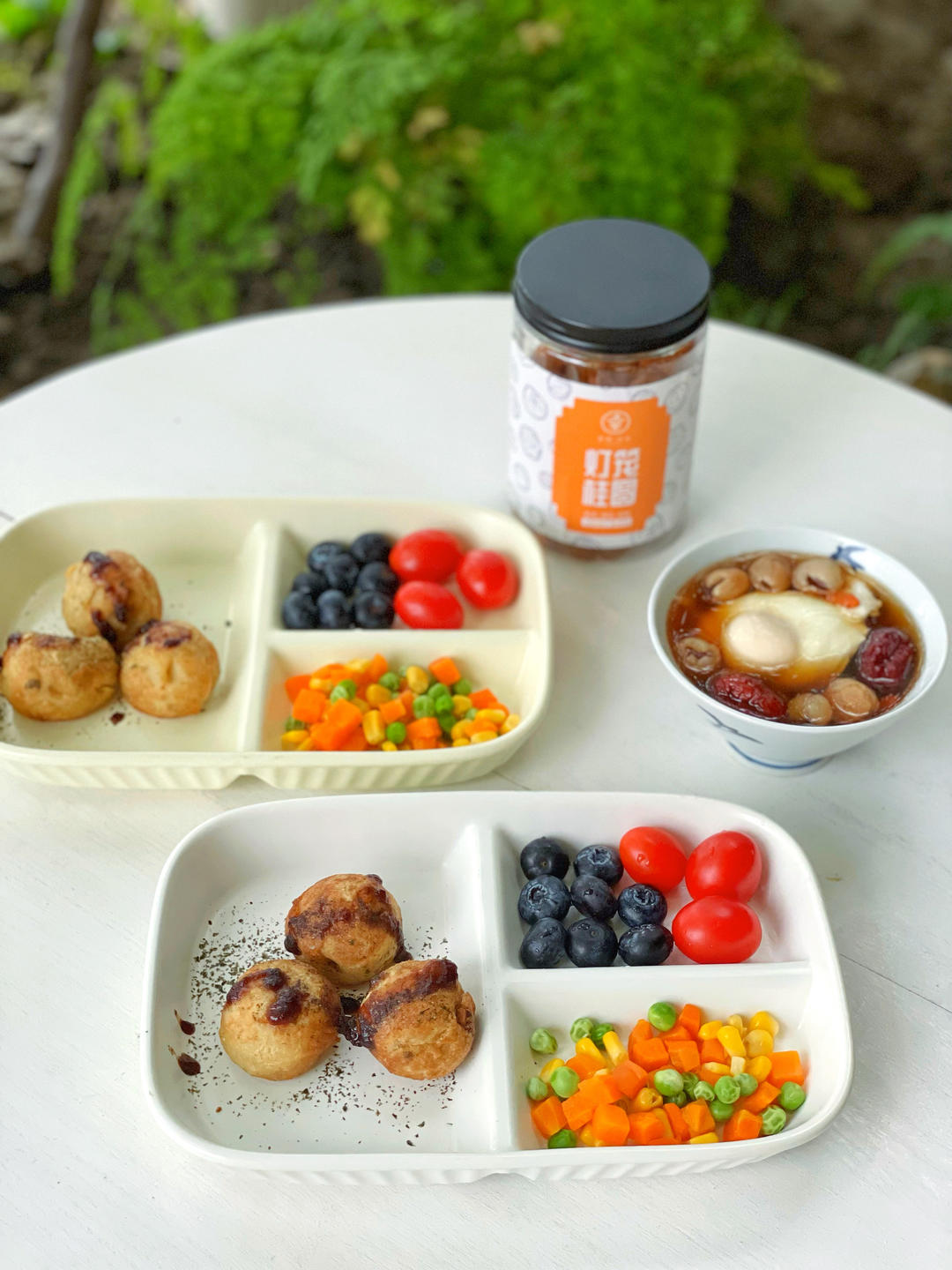 好好吃早餐 桂圆红枣荷包蛋、章鱼丸子🍡三色蔬菜🥕🫐🍅
