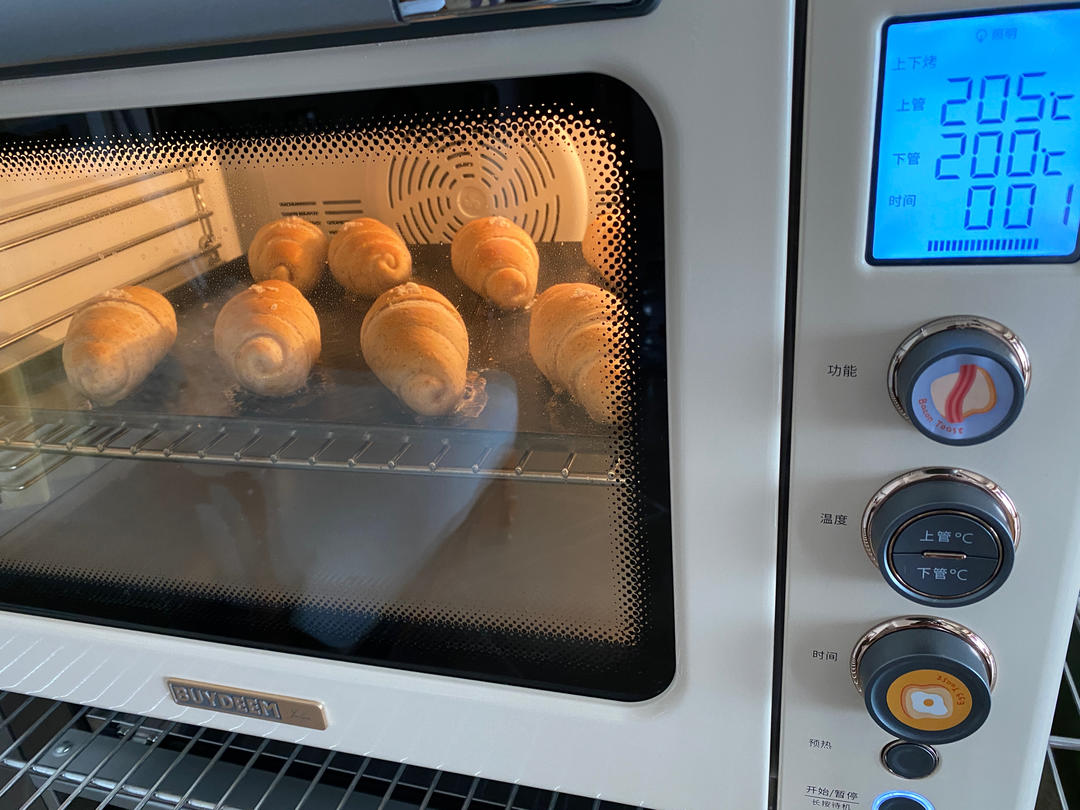 打卡啊呜老师的全麦盐可颂!记录一下我的北鼎烤箱温度210-200/15分钟,这个时间温度比较合适!