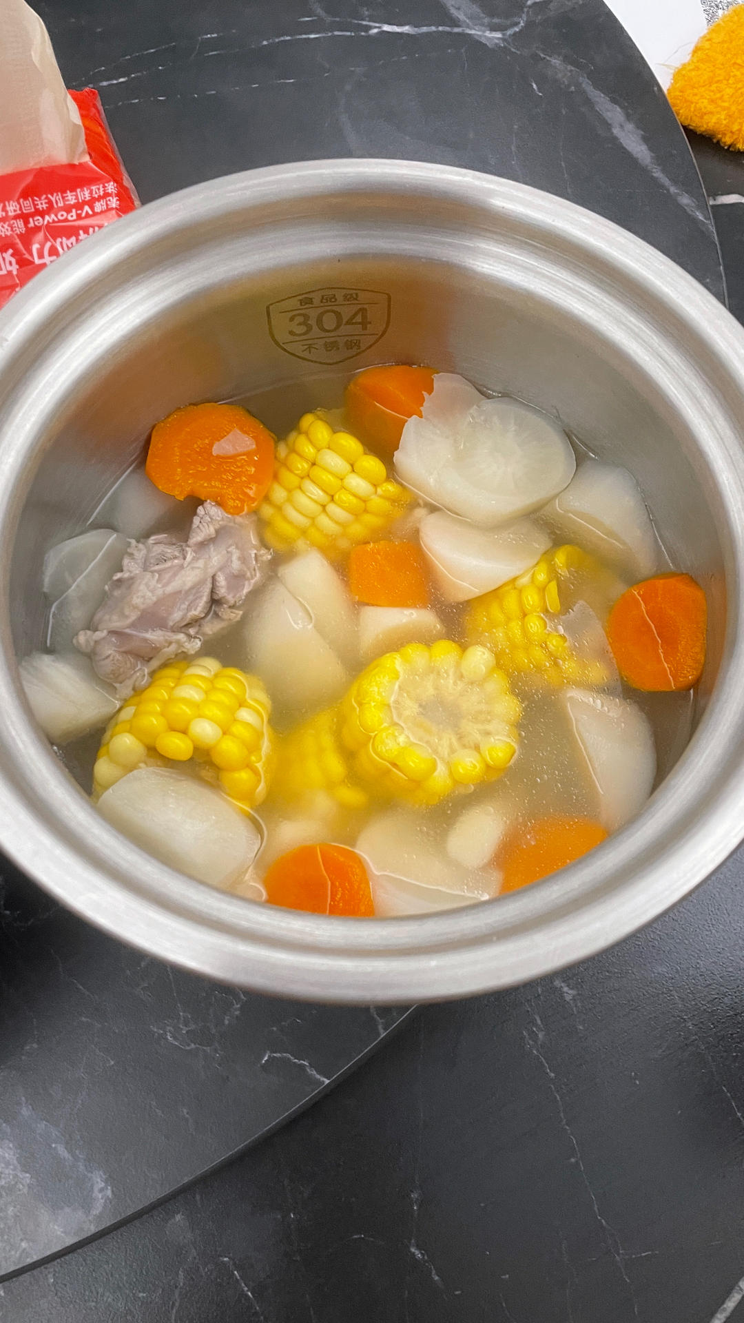 玉米用的是水果玉米煮出来的汤很甜 好喝...