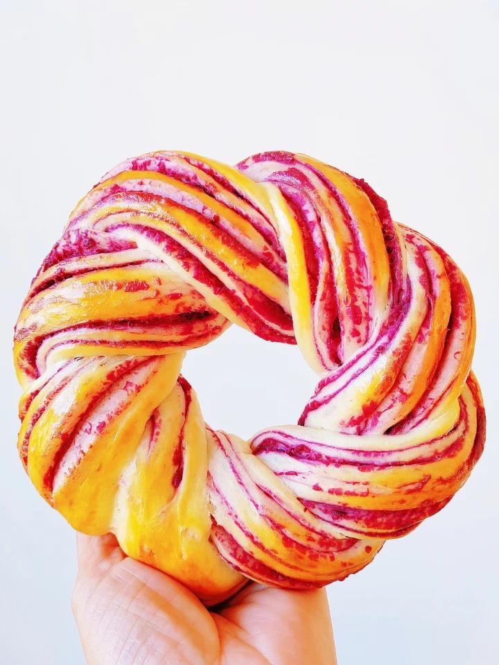 方子4分之1的量,做了5个紫薯花环。
