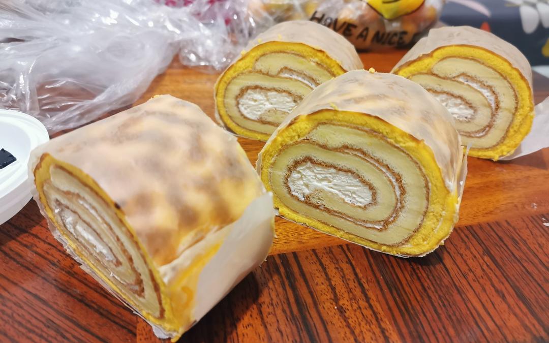 昨晚卷好的虎皮蛋糕,冰箱冷藏了一晚定型刚好。卷得不好看,但味道跟外面卖的一样。一条的分量...