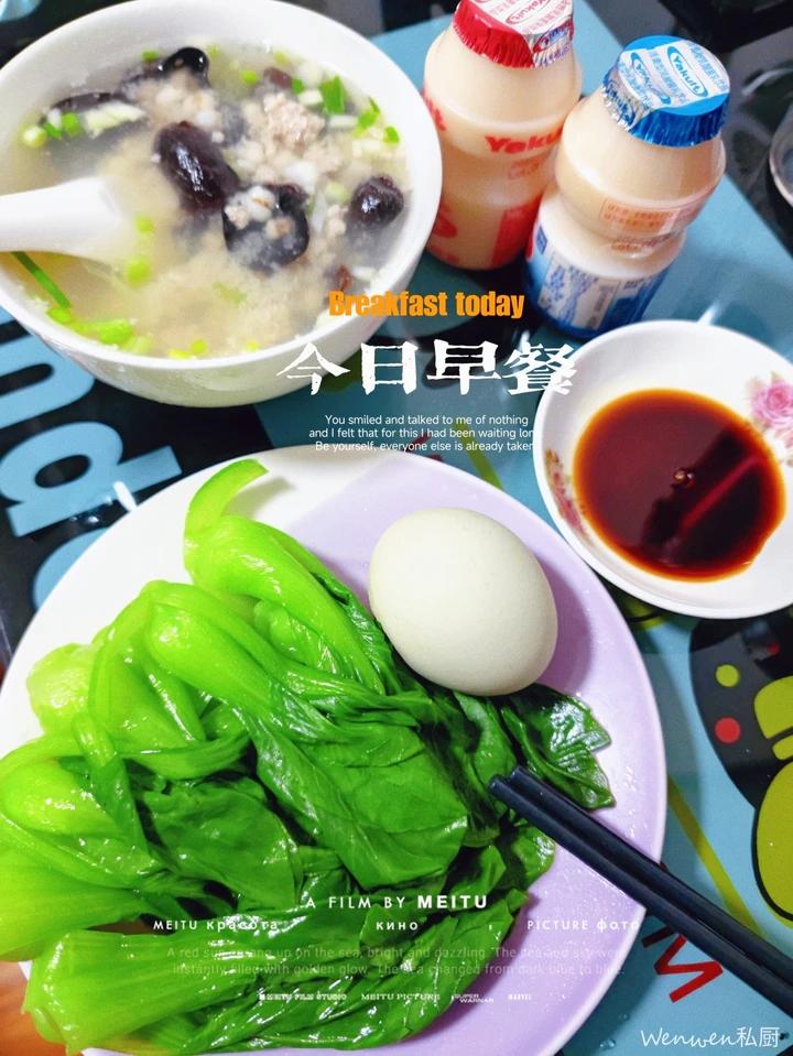 肉沫薏米黑木耳+小青菜+水煮鸡蛋
