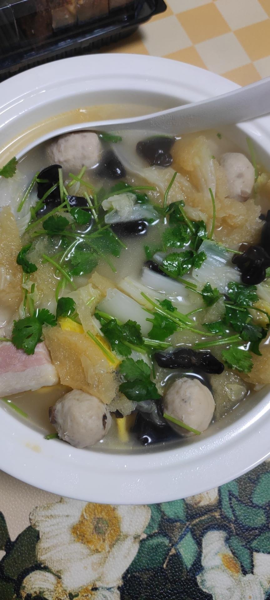 第一次尝试做酸菜粉条炖大骨,味道好极了!