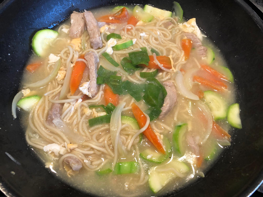 儿子又感冒了,没什么味口,问他想吃什么?他想了一会儿说:汤面🍜!所以做了一小锅肉丝汤面,结果小家伙吃两小碗。😋