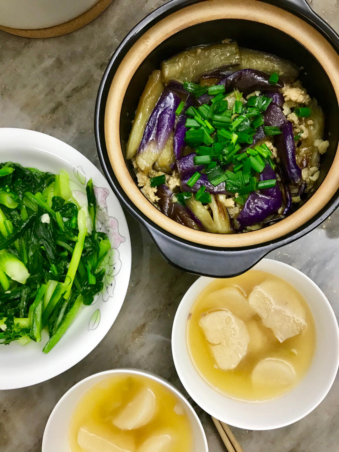 漂亮的茄子煲,茄子洗净切条,抓盐挤出水后洗净再挤出水,不会太咸不会太吸油,只用葱姜蒜酱油胡椒粉,肉末没有腌制没抓淀粉,味...