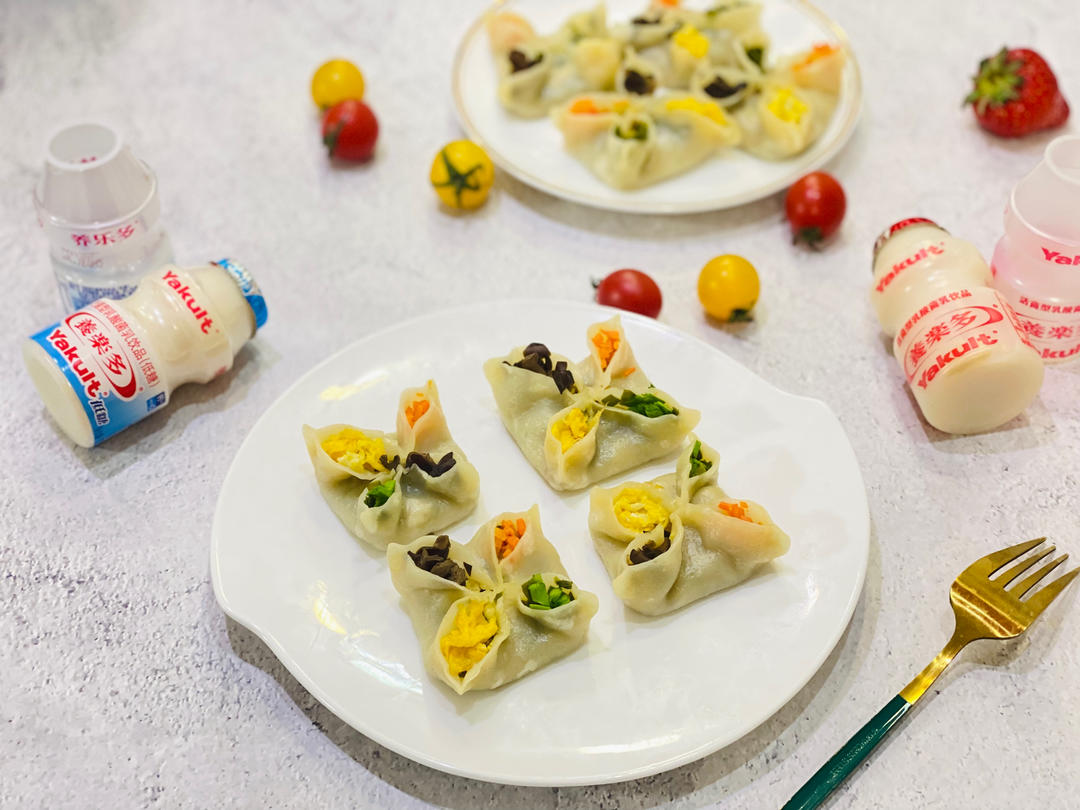 四喜蒸饺,餐后喝瓶养乐多调节肠胃助消化~@