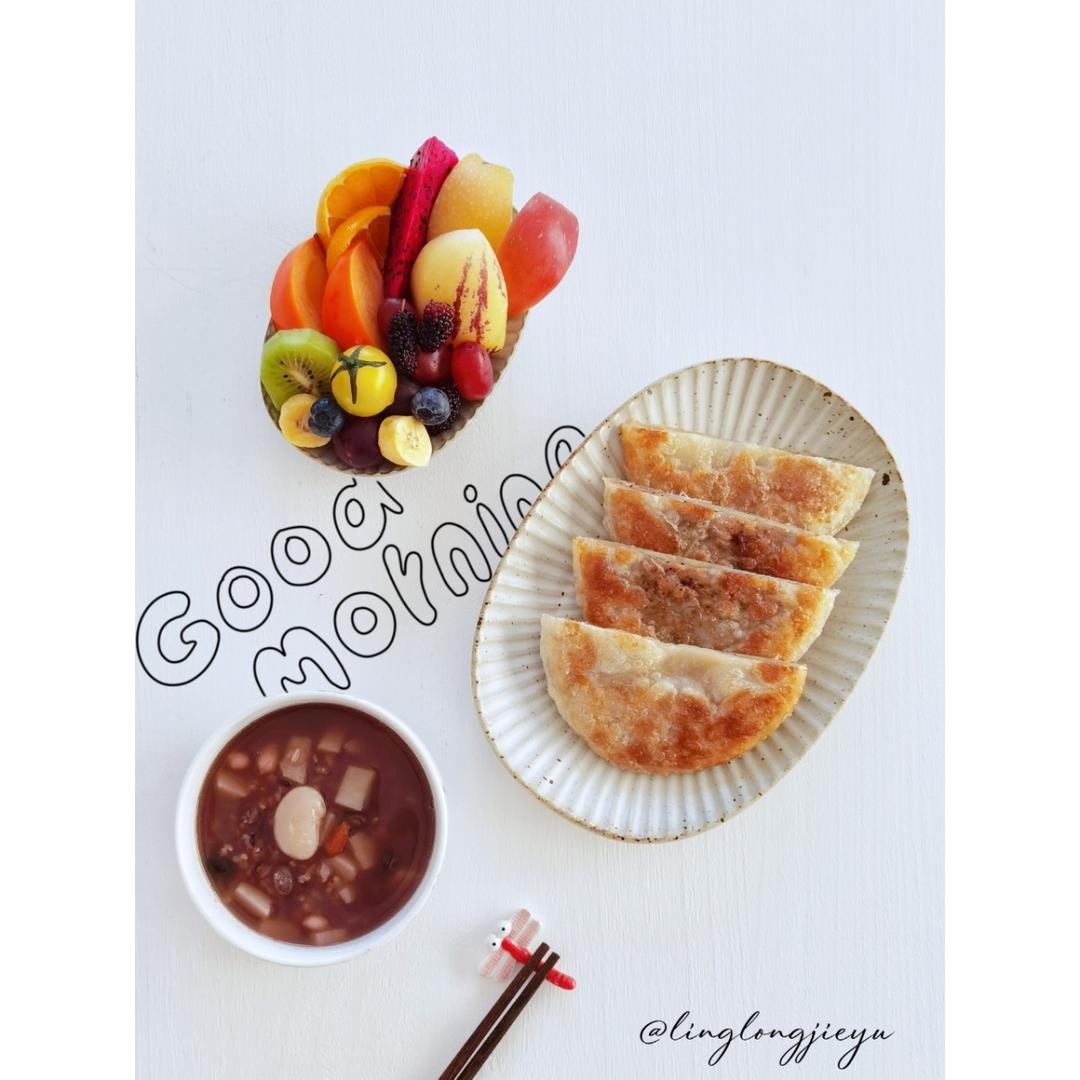 牛肉馅饼,杂粮粥,水果!