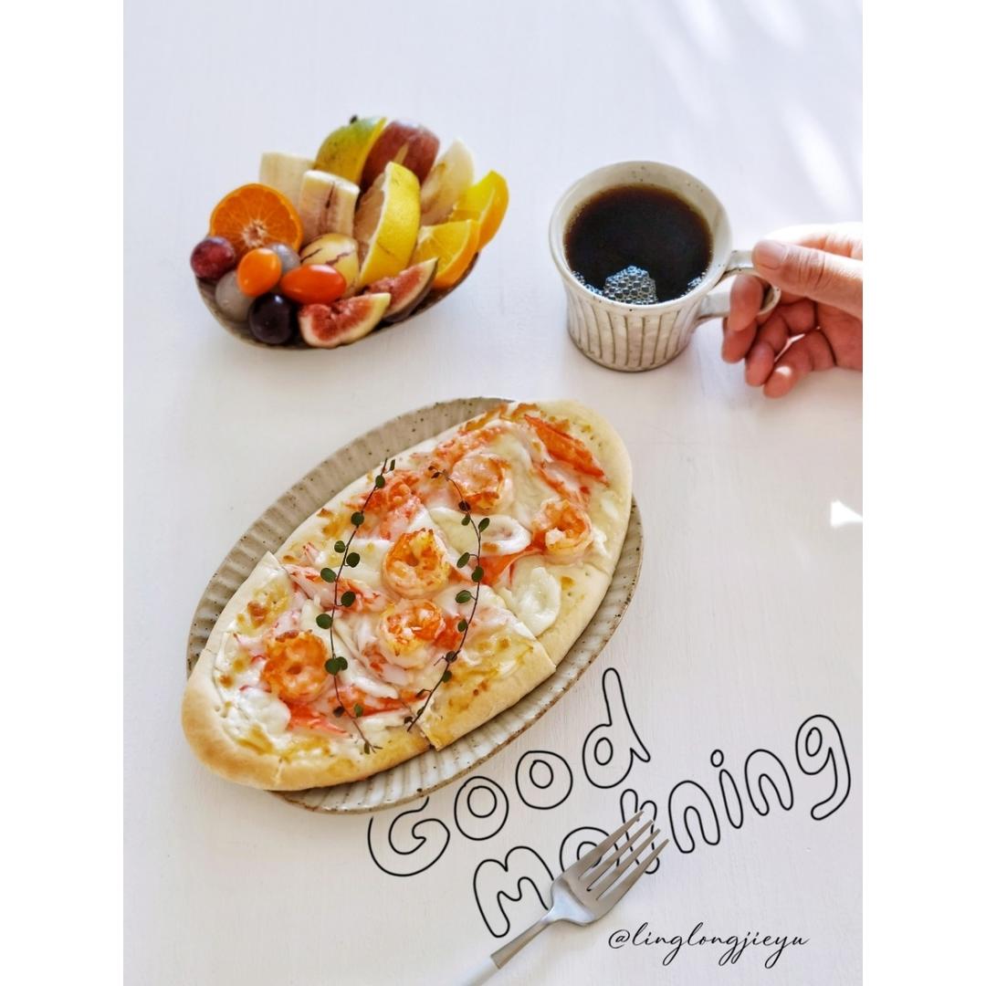 鲜虾蟹柳奶酪披萨,水果,手冲☕️
