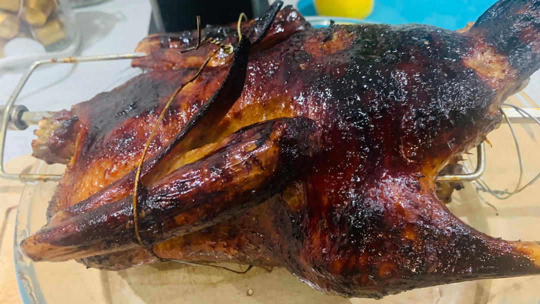 一开始只140度只考了60分钟,160烤了10分钟,倒扣掉下来了,下次140度烤70分钟,160烤10分钟。 放车厘子的...
