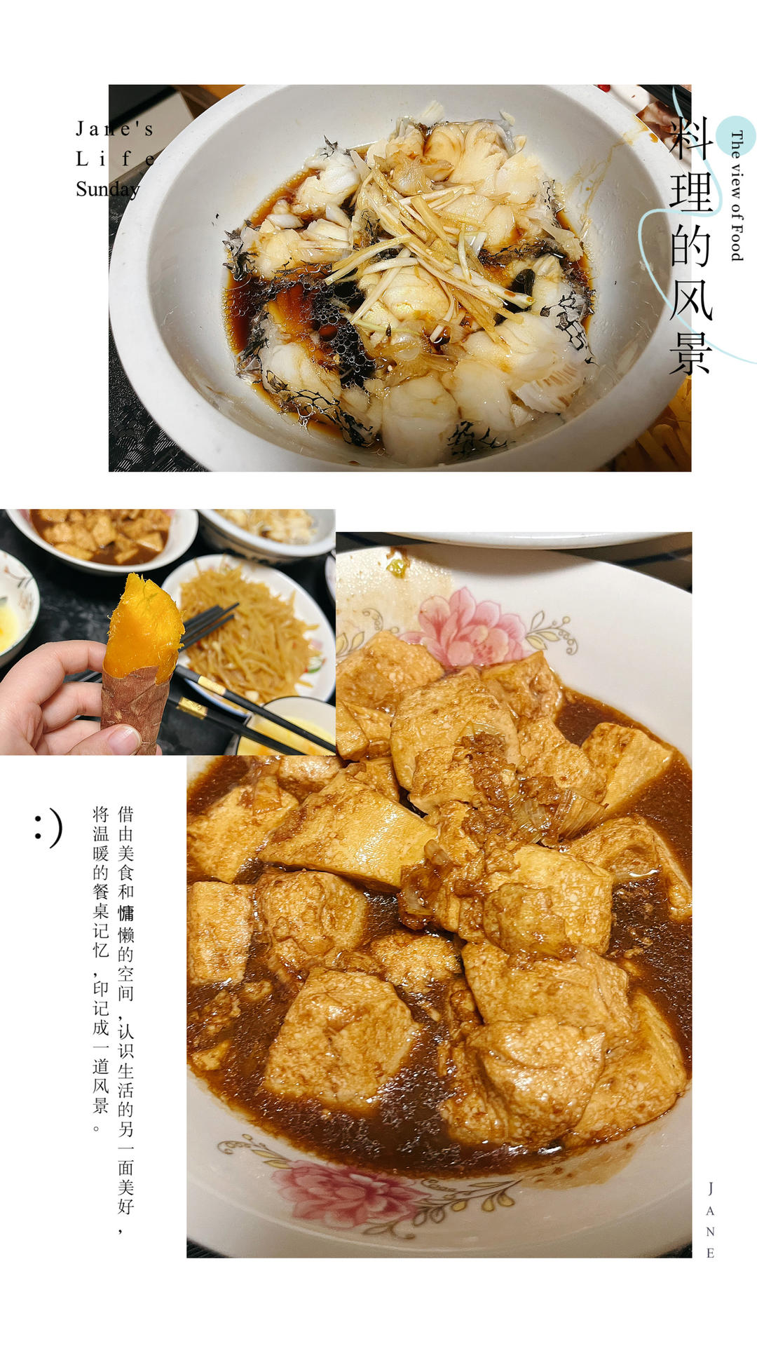 老姐做的蒸鳕鱼+炒豆腐+烤红薯,还有红薯小米粥,炒土豆丝,空气炸锅鸡米花和薯条~