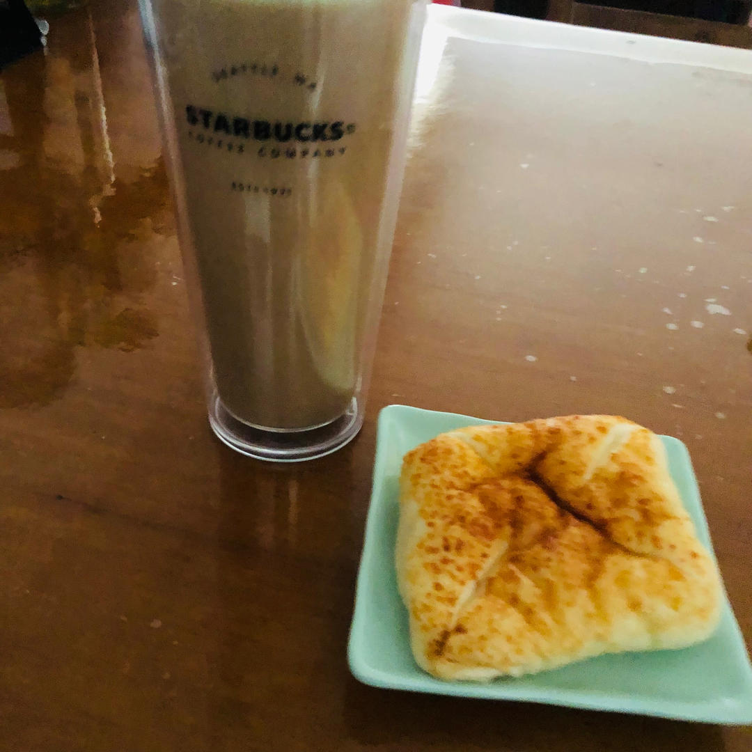 燕麦拿铁。芝士面包