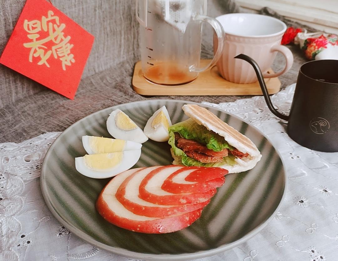牛肉火烧配咖啡,过年每天都有大餐,早上起来都不饿,简单点,早餐也不能省