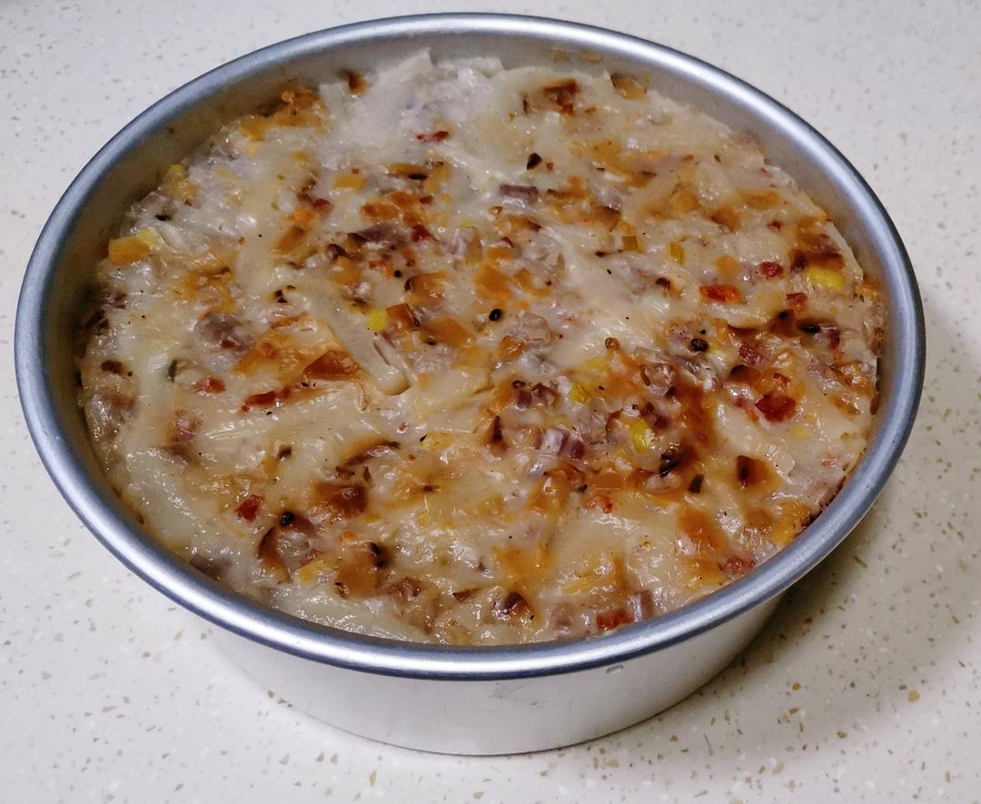 免年第一糕,喜欢加半个香芋,用了250克粘米粉,50克生粉,加了点香葱,味道刚刚好,今天带了点回娘家获好评!👍