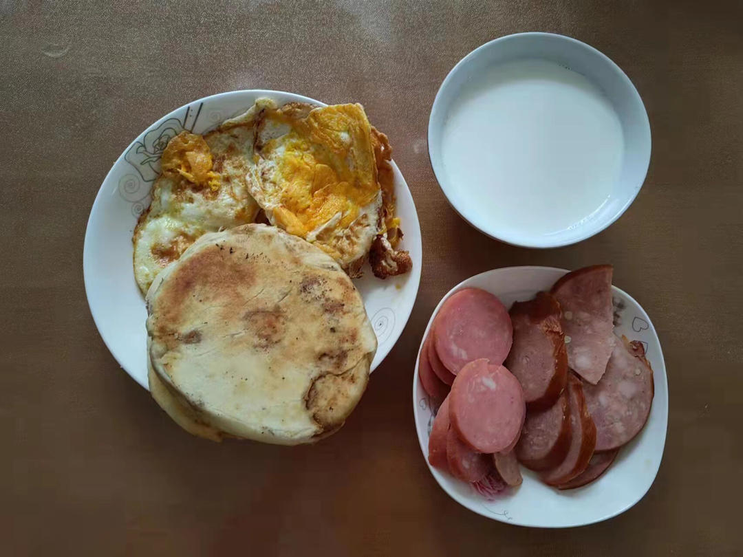 烧饼夹煎蛋🍳加酱拼配牛奶🥛
