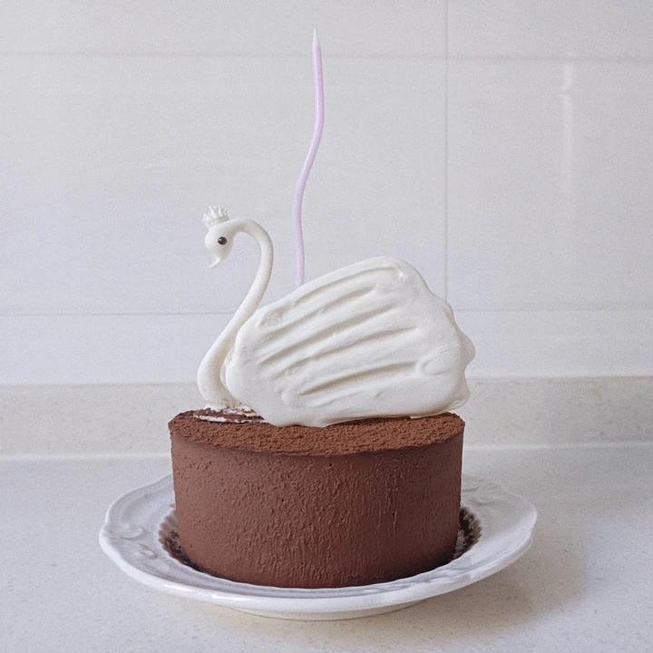 结合了网红天鹅蛋糕:鹅颈用了模具,鹅身是白色费列罗,羽毛手涂