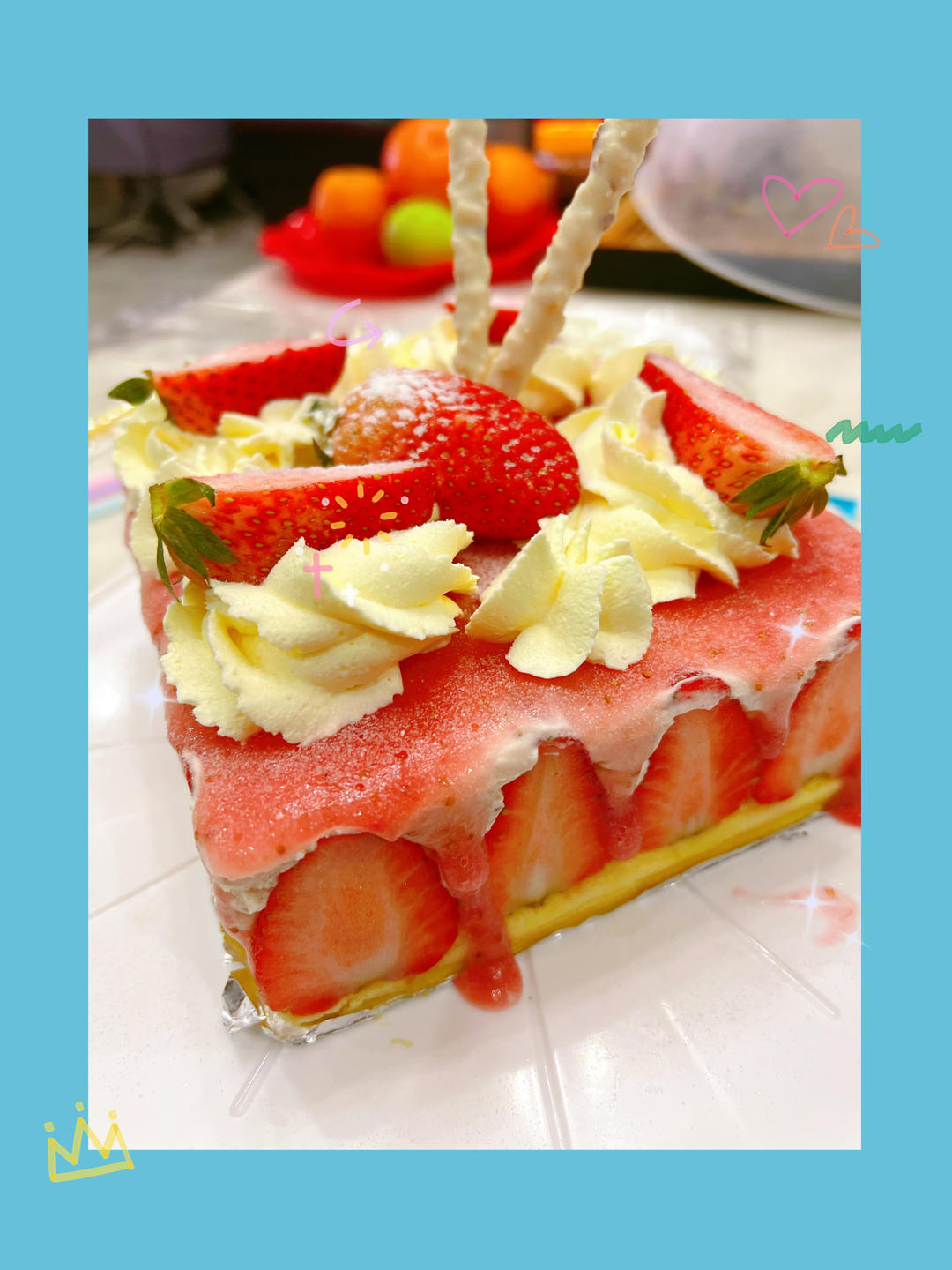 蛋糕糊稍微少了点,有点分配不均。另外用小刀划完之后不知道为啥越烤越歪...
