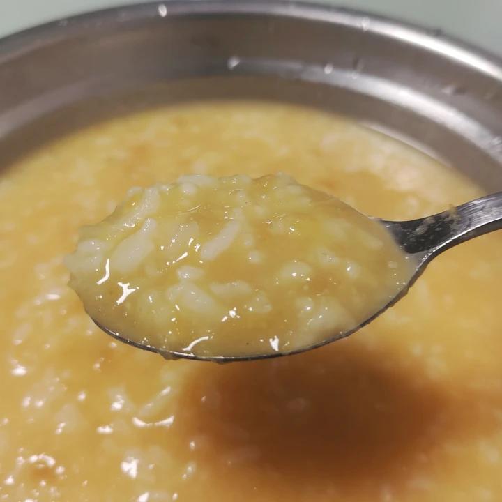 很好的方子,我也能煮出绵密适度的粥啦。红薯泥里加了一点炼乳,粥里加了一点稀奶油,好喝。