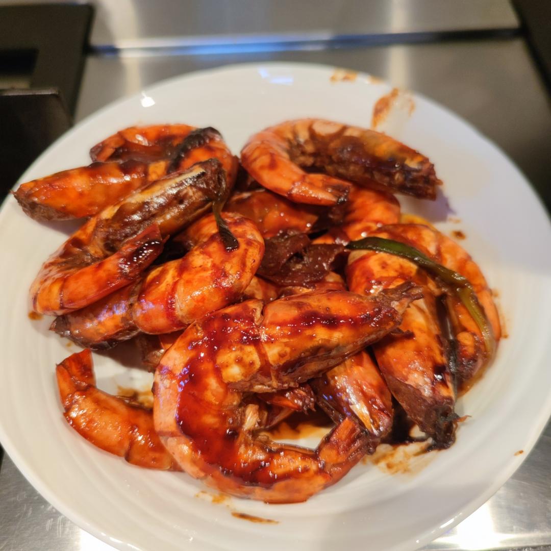调味汁和虾的结合就是油焖大虾的味儿,小孩老公都喜欢。就是我稍微烧老了点,下次收汁时间再...