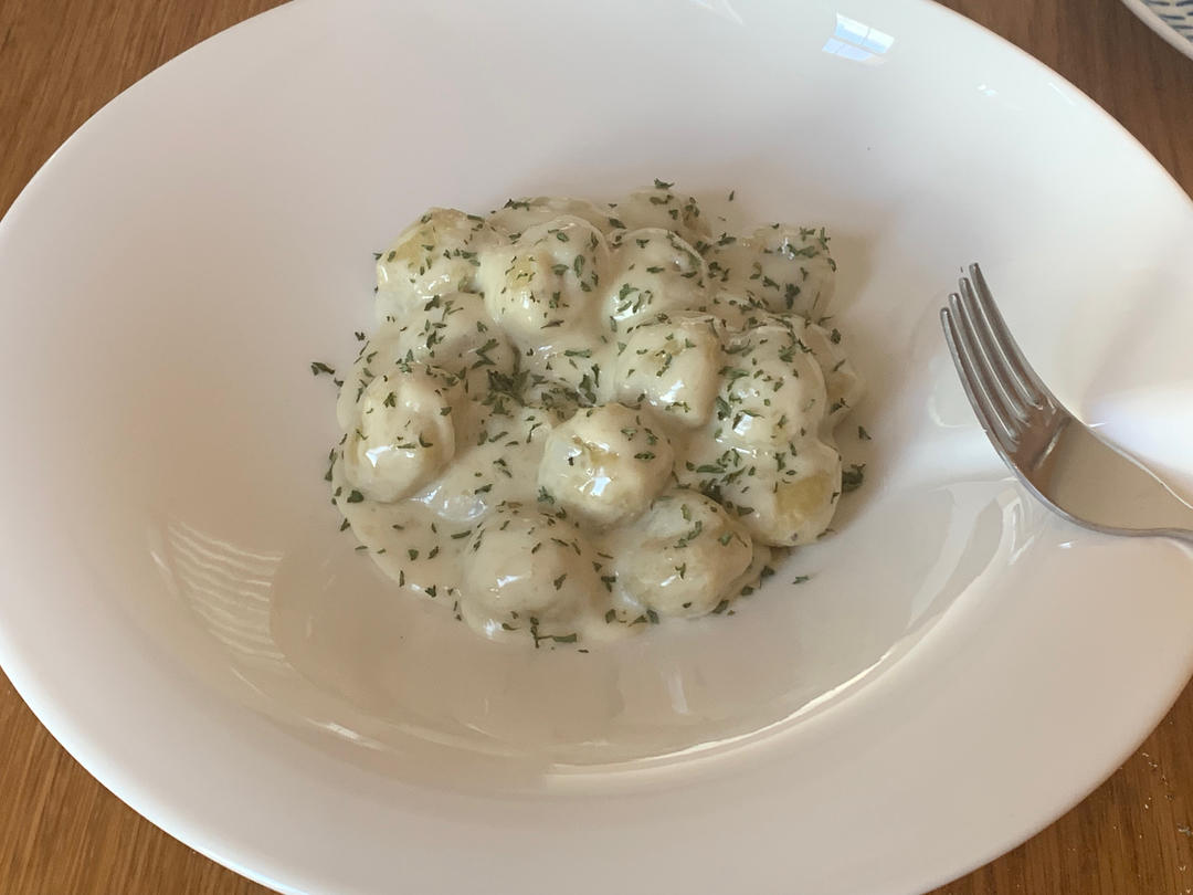 (记一下自己的比例)放了40g牛奶,35g淡奶油,35g蓝纹,融化后加入团子,酱汁浓稠以...