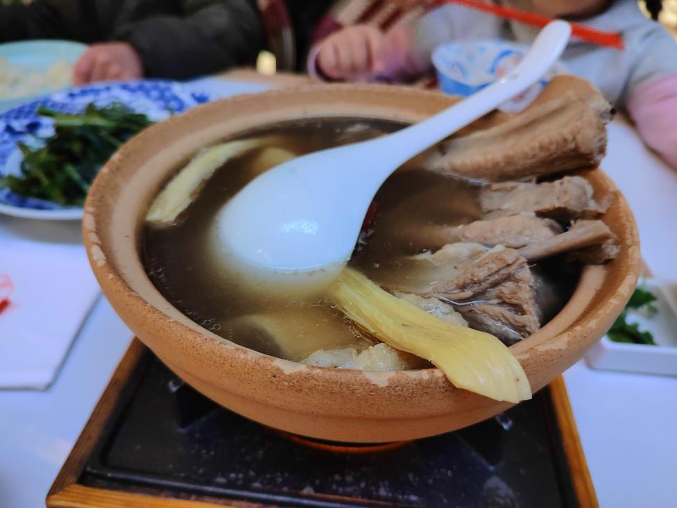 两个人分量有点多,不吃猪手的妞妞啃了两块,熏肉来着,泡了很久,很给面子了。