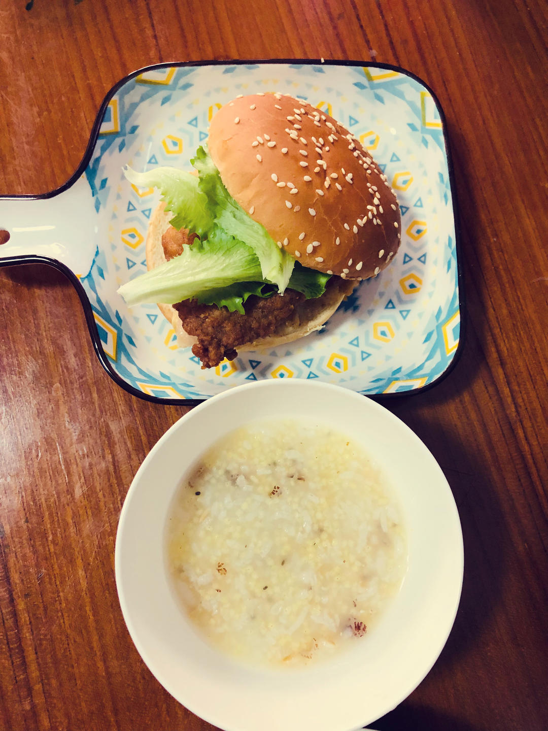 汉堡+杂粮粥