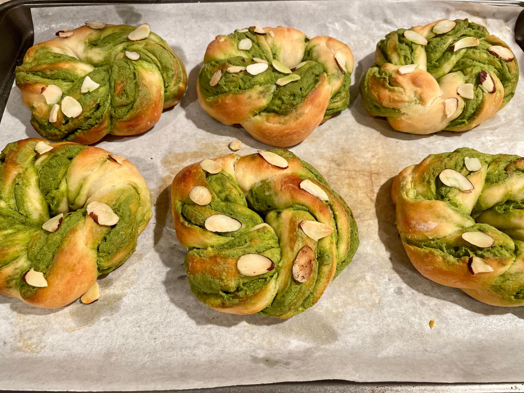 借鉴菜谱做成了小面包,减了糖和黄油,奶粉不够了加了两包豆浆粉。烤了20min正好,好好吃!