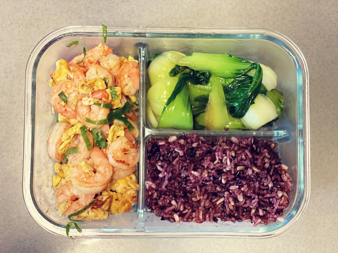 杂粮饭+虾仁鸡蛋+清炒青菜