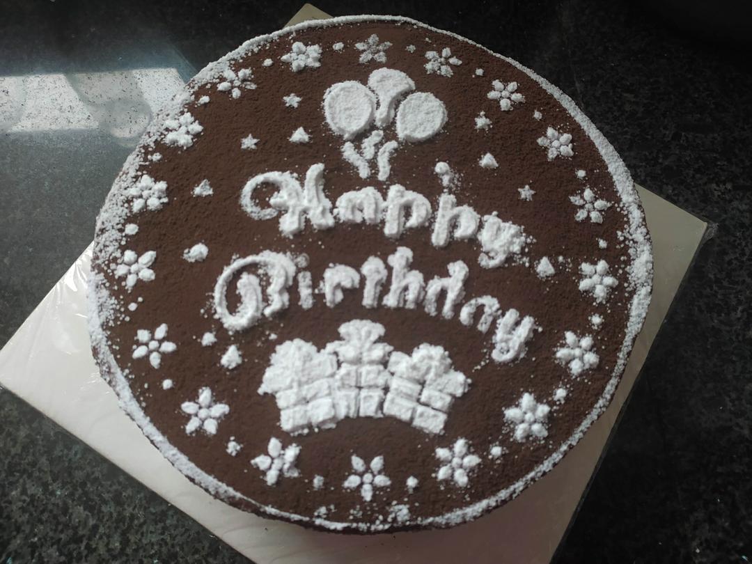 娃的生日,用三层直径20cm的虎皮蛋糕,做了一个8寸芒果馅的可可味...