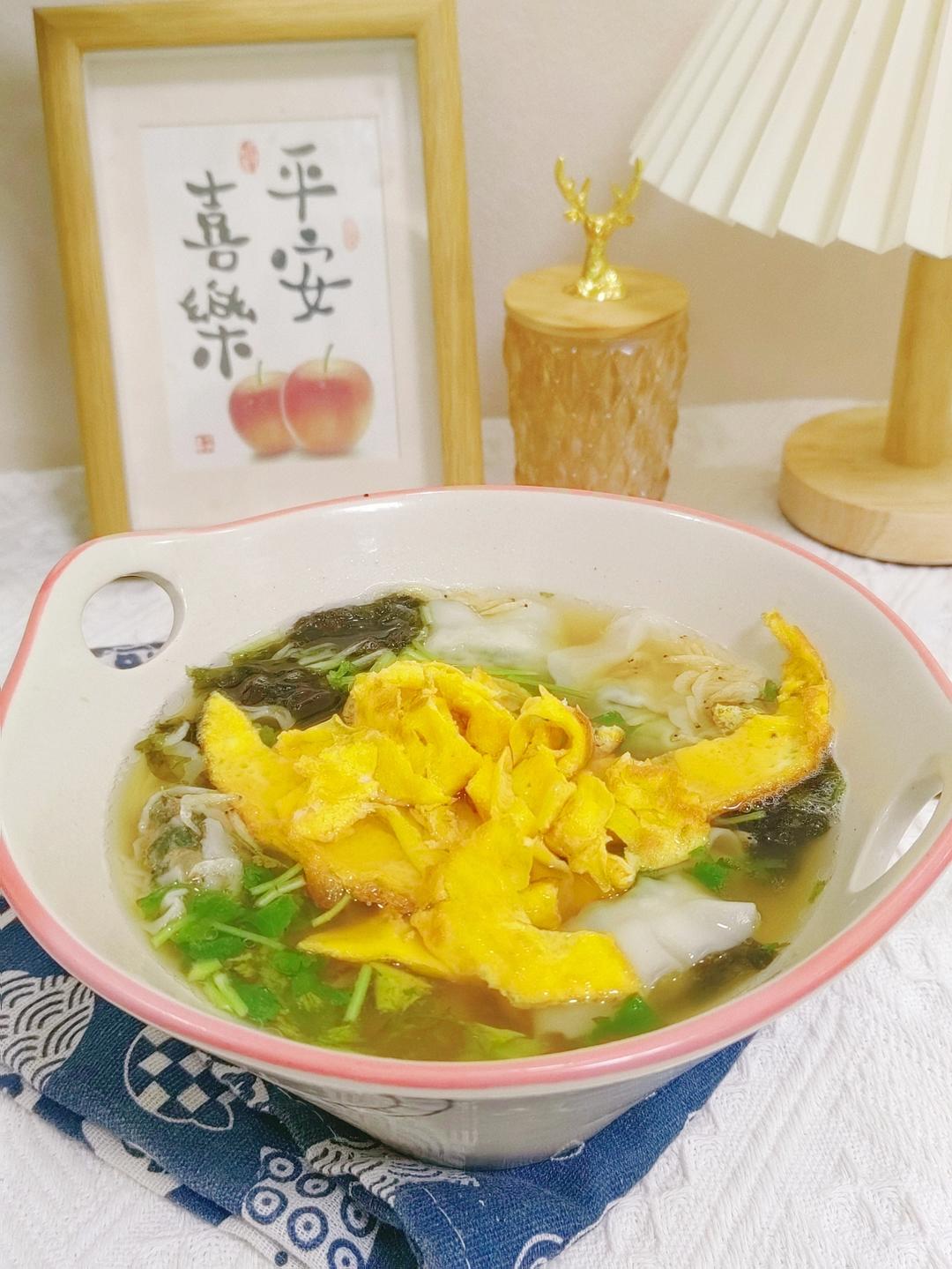 自己包的荠菜馄饨就是好吃。