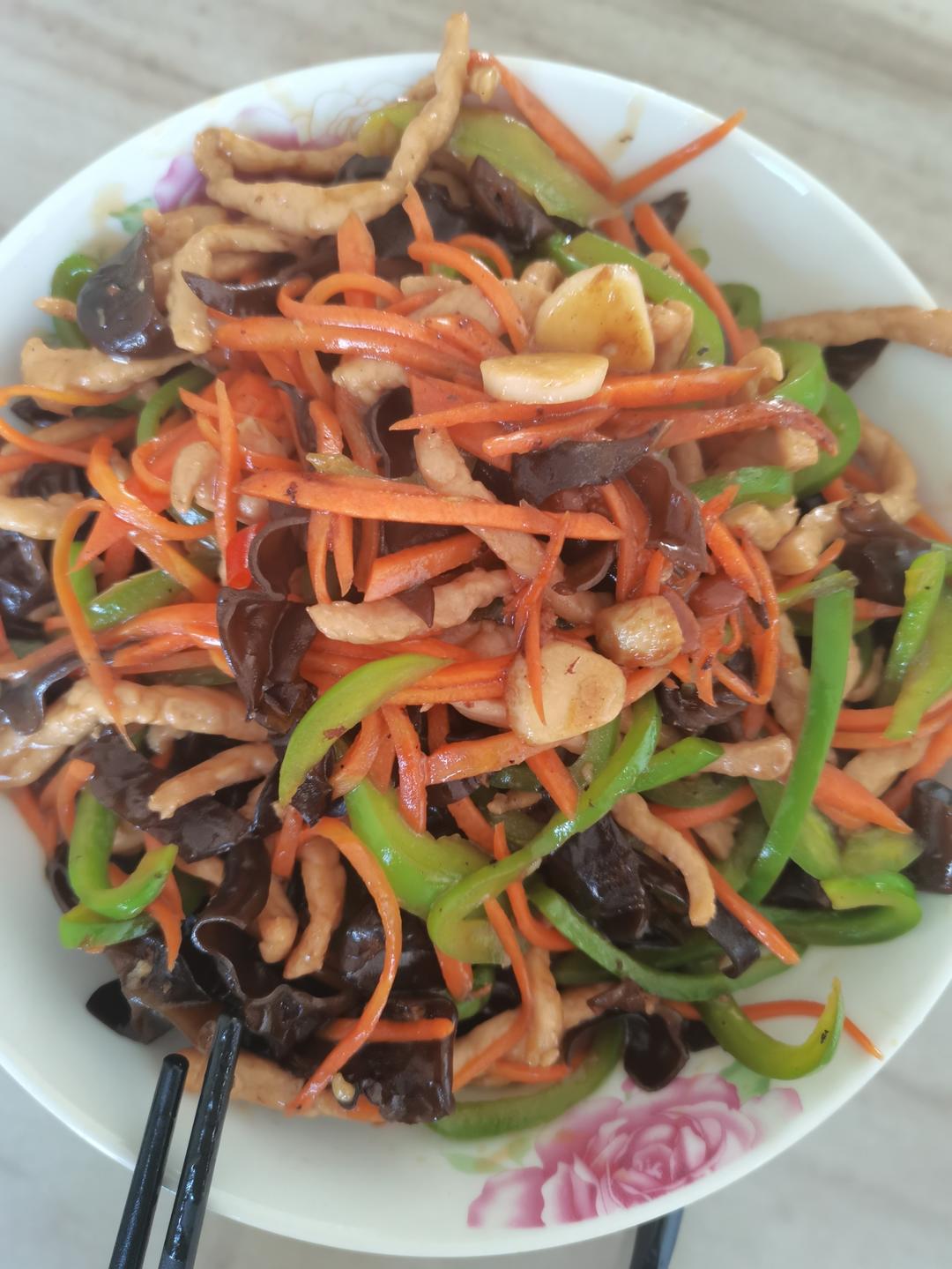 里脊肉切丝,加入料酒,淀粉,盐,蛋清,酱油,腌制一会;调制酱汁,两勺酱油一勺醋,一勺蚝油...