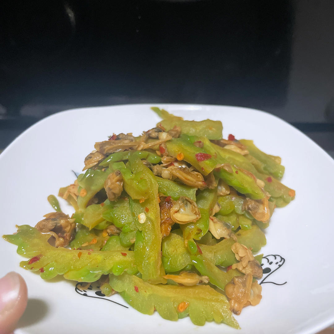 苦瓜炒花蛤肉,蛮好吃的噢~