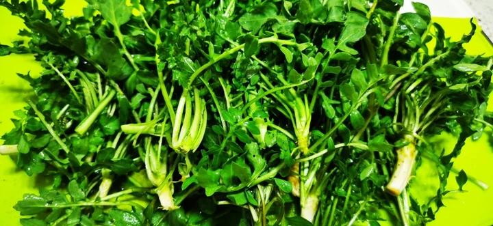 从地里挑回来的菜,都给摘干净了。