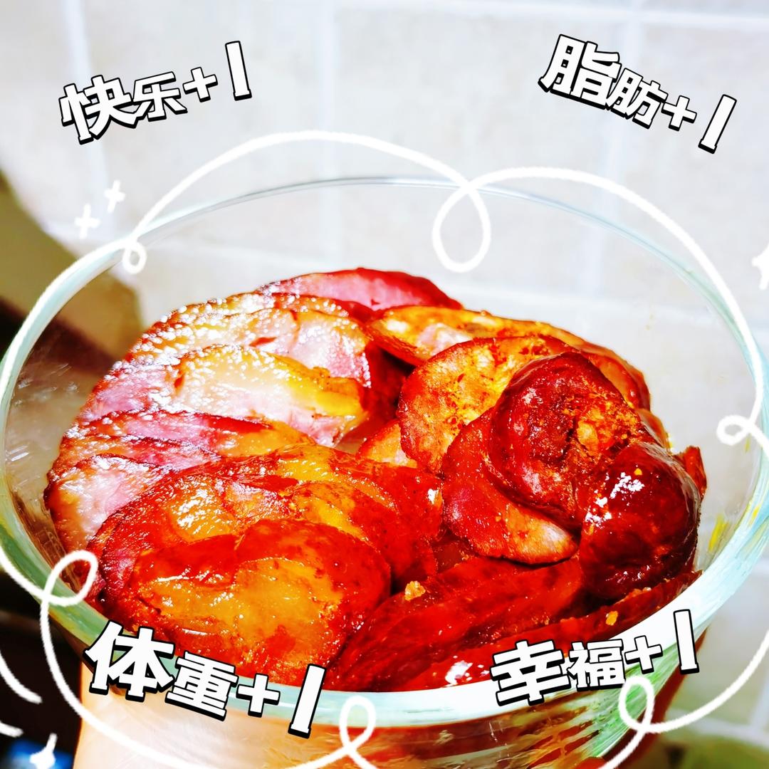 刚才和孩子通电话,他听到我吃香肠也想吃。练完就去买,回家煮好才出门。到家切片...
