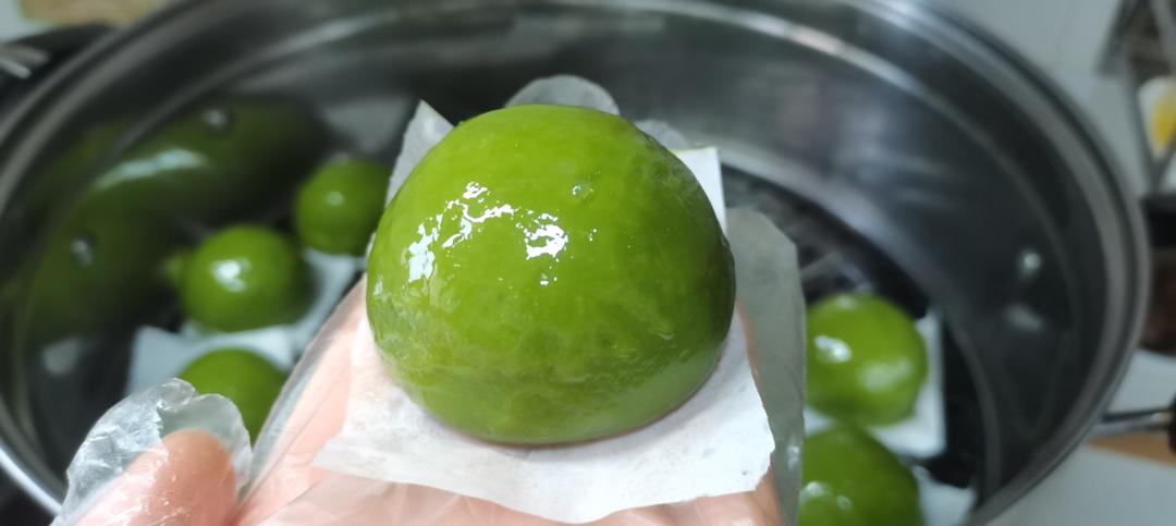 还比较成功,没有裂开,估计跟粘米粉有关,冰糖我只放了18克,大概蒸了五分钟,表面有点硬,...
