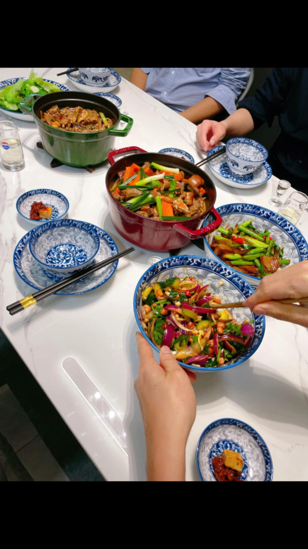 今晚6人聚餐,焖一只鸭、焖4斤羊腩、芦笋炒烟熏腊肉、蒜蓉生菜、凉拌青瓜,客人们已经等着吃,...