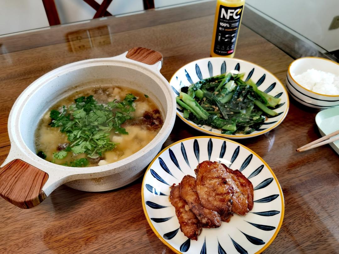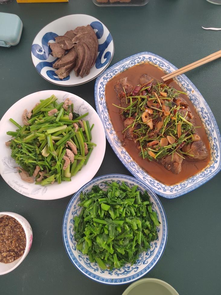 昨天妈妈做的红烧鱼,今天爸爸做的腌笃鲜和萝卜丝豆泥,快乐宅家。