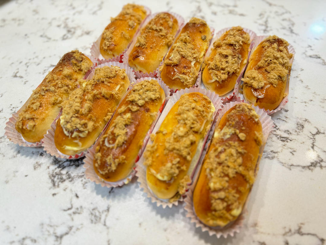 用的是万能台式面包液种法,很松软,好操作,185度18分钟