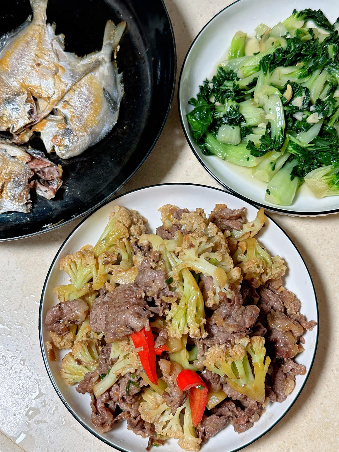 白鲳鱼,吊龙菜花,奶白菜。