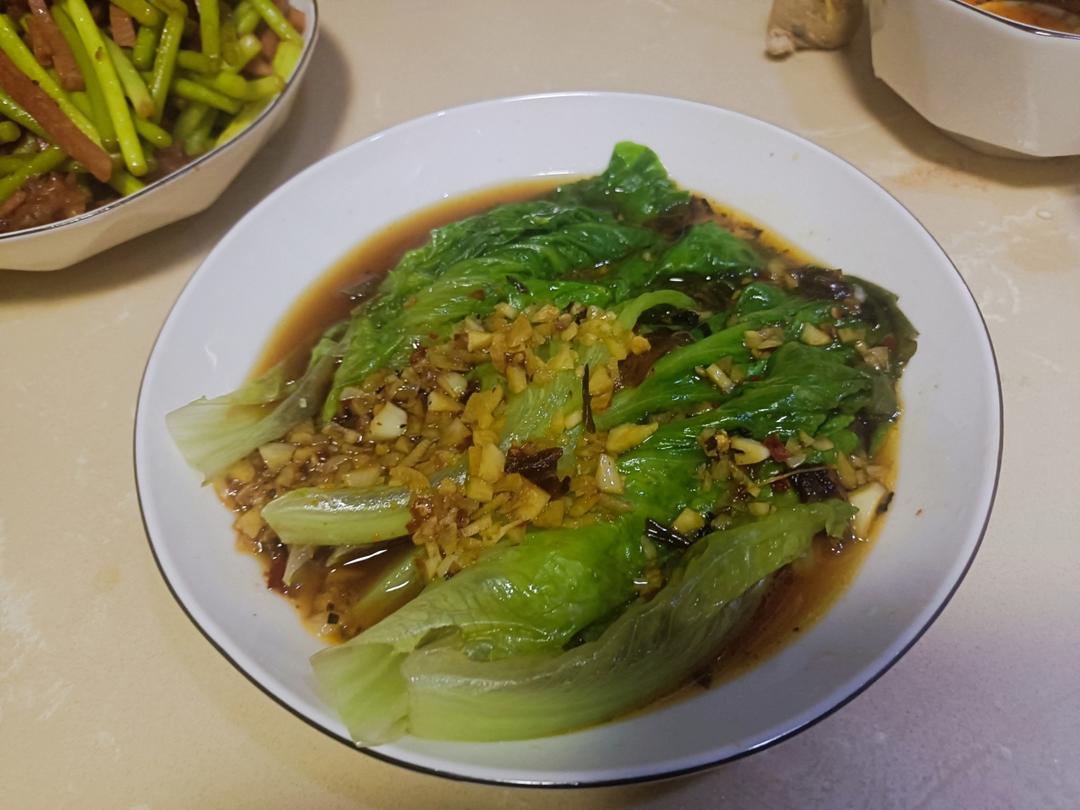 烧带鱼、莴笋炒木耳、炒青菜。附早上的肉末胡萝卜丝。