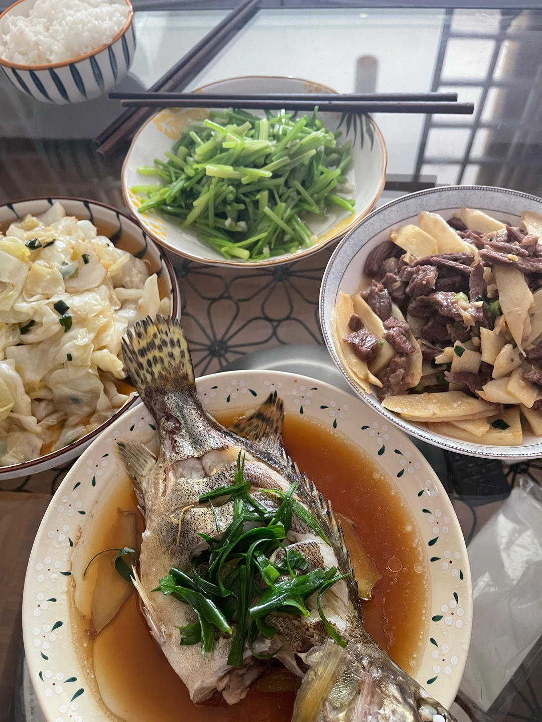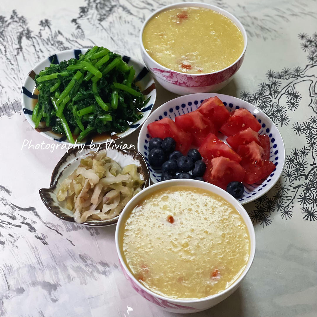 午晚餐|白灼茼蒿+榨菜丝+百合枸杞小米粥++大列巴+粉番茄蓝莓🫐~🌷