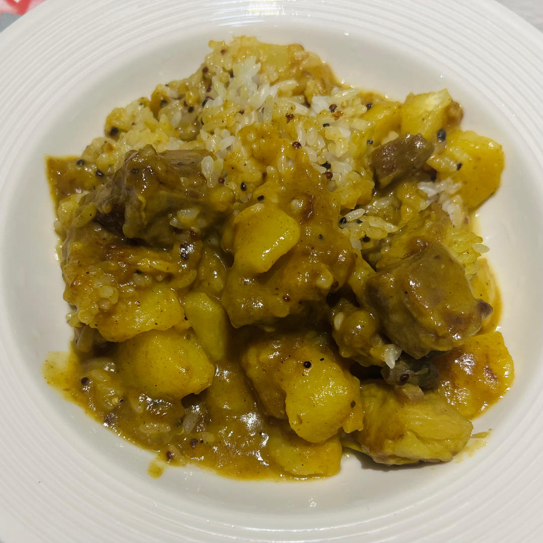 为了省事,把米饭直接拌在锅里,再放到盘子里。这样能做到完美收汁。又是没有洋葱的一天。最后...