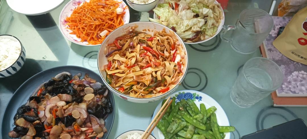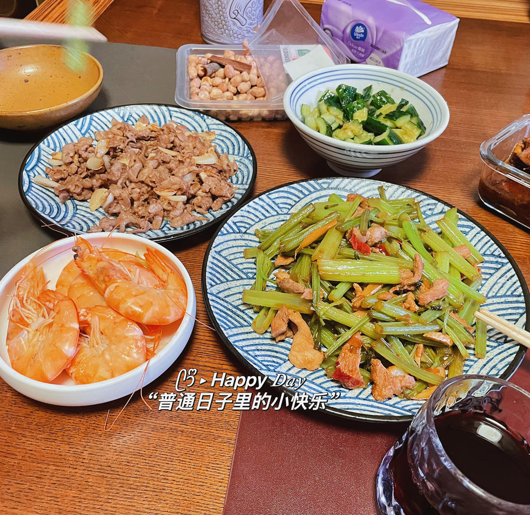 男主做的N次晚饭,说要练习炒芹菜、炒蒜苔、蒜爆肉😁他做啥我就跟着吃,今晚喝点小酒🍷刚上来发图。