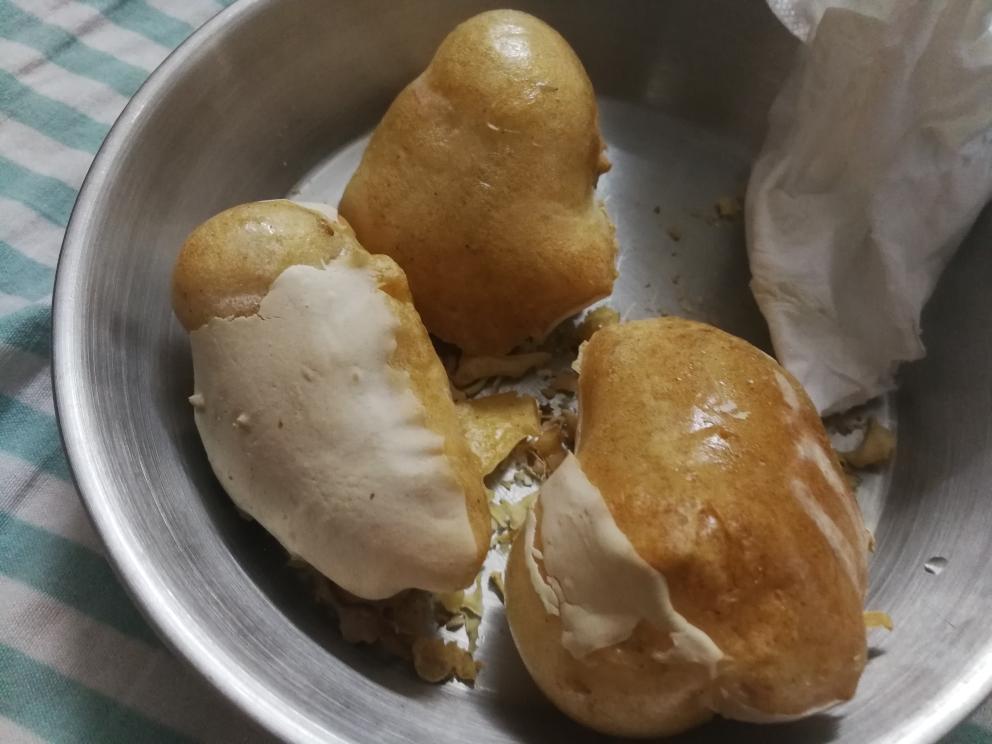 试了两个方子,成品都是这样 不知道哪里出了问题,没有裱花袋用的勺子