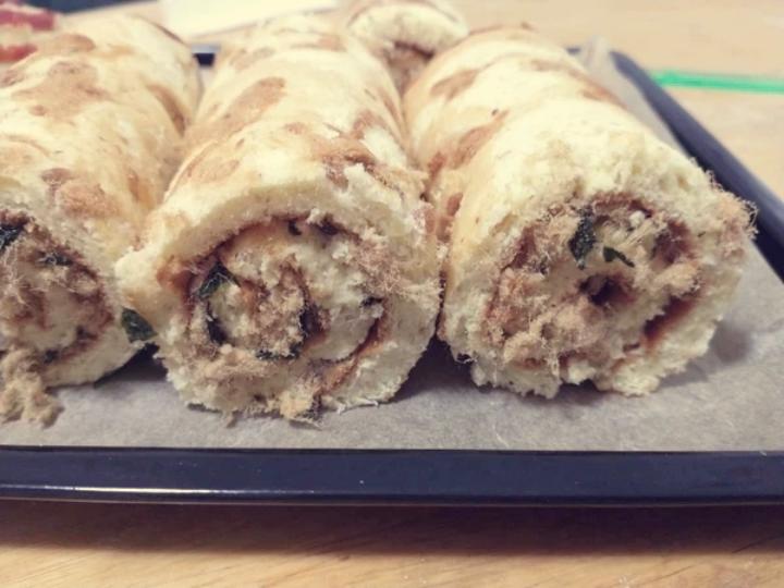 中间卷了肉松和海苔